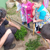 Hoy hacemos labores de limpieza de hierbas, aireado de la tierra de cada bancal y vemos como crecen nuestras plantas aromáticas en el rincón que hemos preparado para ellas.